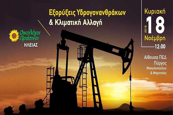 Πύργος: Σήμερα η εκδήλωση «Εξορύξεις Υδρογονανθράκων στην Ελλάδα και Κλιματική Αλλαγή»