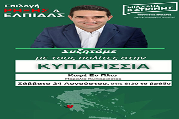 Μιχάλης Κατρίνης: «Το βράδυ του Σαββάτου συζητάμε με τους πολίτες στην Κυπαρισσία»