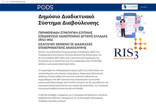 ΠΔΕ: Πλατφόρμα Διαβούλευσης RIS3 Δυτικής Ελλάδας 2021-2027 για την υποβολή προτάσεων