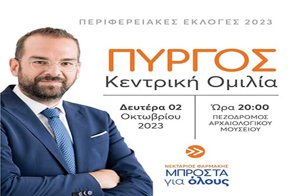 Τη Δευτέρα στον Πύργο η κεντρική ομιλία του Νεκτάριου Φαρμάκη