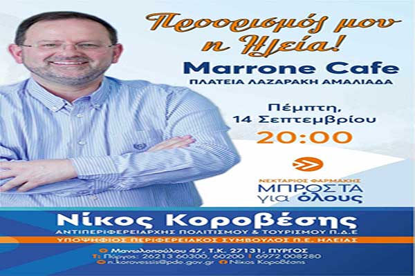 Νίκος Κοροβέσης: Πέμπτη βράδυ στην Αμαλιάδα - ΜΠΡΟΣΤΑ ΓΙΑ ΟΛΟΥΣ και στο δήμο Ήλιδας