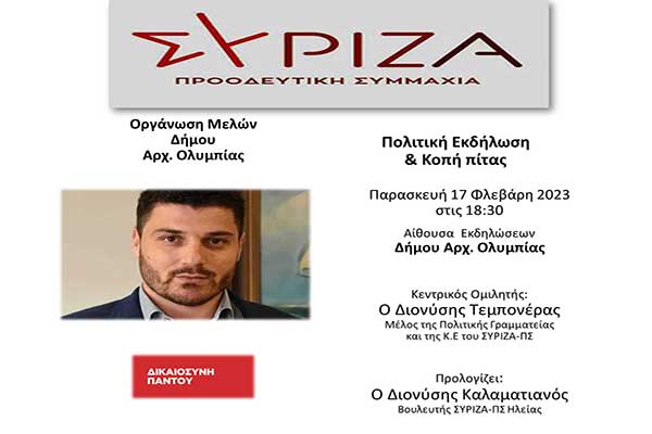ΣΥΡΙΖΑ Ηλείας: Πολιτική Εκδήλωση και Κοπή πίτας Οργάνωσης Μελών του Δήμου Αρχ. Ολυμπίας