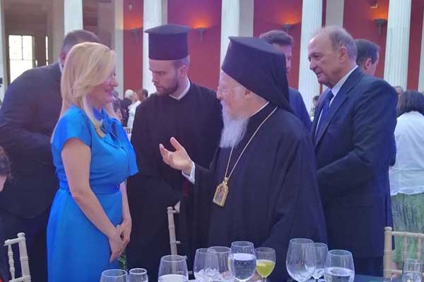 Στην τελετή αναγόρευσης του Οικουμενικού Πατριάρχη κ.κ. Βαρθολομαίου σε Επίτιμο Καθηγητή του ΕΑΠ η Δρ. Αυγερινοπούλου, εκ μέρους του Προέδρου της Βουλής των Ελλήνων