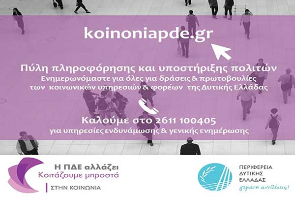koinoniapde.gr: Η ψηφιακή πύλη για τις δράσεις και πρωτοβουλίες των κοινωνικών υπηρεσιών και φορέων της Δυτικής Ελλάδας