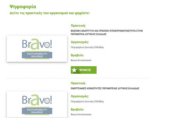 Υποψηφιότητα Περιφέρειας Δυτικής Ελλάδας με 2 πρωτοβουλίες στα βραβεία BRAVO AWARDS 2022