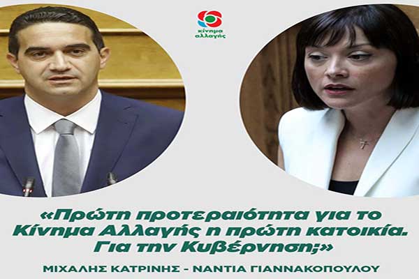 Κοινή Δήλωση Κοινοβουλευτικών Υπευθύνων Κινήματος Αλλαγής Ανάπτυξης Μ. Κατρίνη και Δικαιοσύνης Νάντιας Γιαννακοπούλου