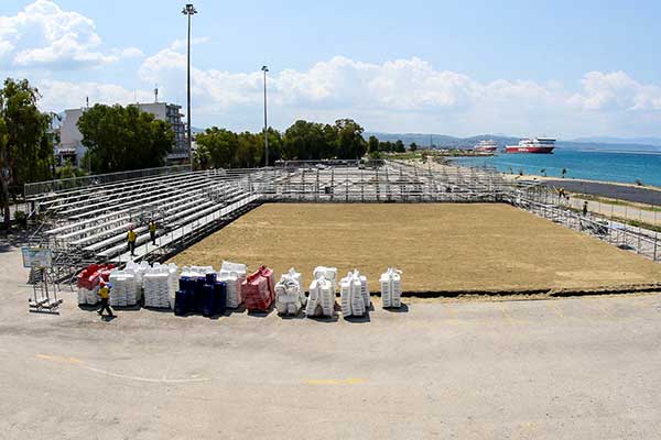 Μεσογειακοί Παράκτιοι Αγώνες: Τοποθετήθηκαν οι εξέδρες στο γήπεδο του Beach Handball στην «Άρτεμις»