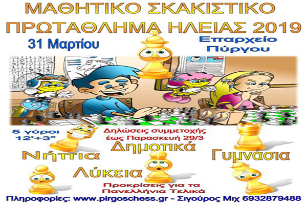 Πύργος: Την Κυριακή το Μαθητικό Σκακιστικό πρωτάθλημα Ηλείας