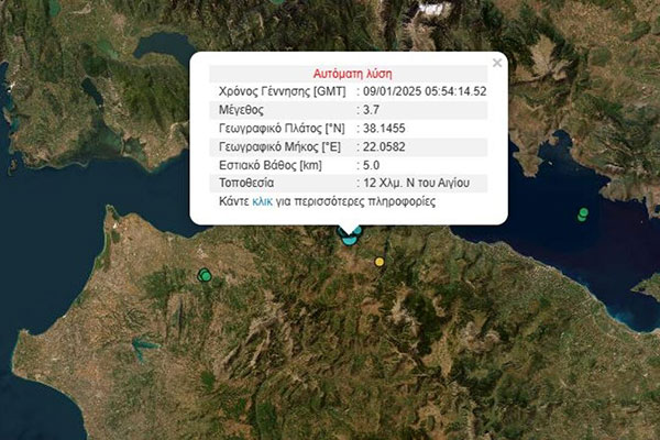 Σεισμός 3,7 Ρίχτερ στο Αίγιο - Προηγήθηκε δόνηση 3,2R