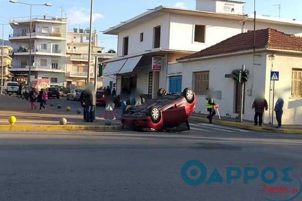 Αυτοκίνητο αναποδογύρισε μπροστά σε Δημοτικό Σχολείο της Καλαμάτας
