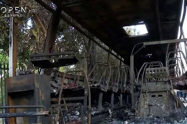 Επεισόδια με μολότοφ έξω από την Γεωπονική Σχολή – Κάηκαν ολοσχερώς δύο τουριστικά λεωφορεία