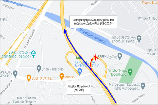 Ολυμπία Οδός: Ολιγόωρος αποκλεισμός του κλάδου εξόδου του Κόμβου Κ1 της Περιμετρικής Πατρών