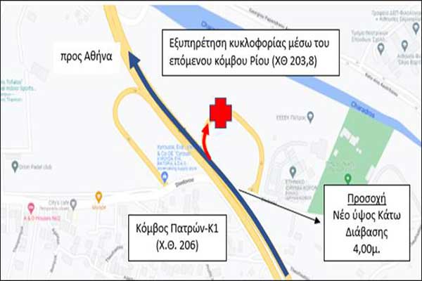 Ολυμπία Οδός: Ολιγόωρος αποκλεισμός του κλάδου εξόδου του Κόμβου Κ1 της Περιμετρικής Πατρών στα Μποζαΐτικα