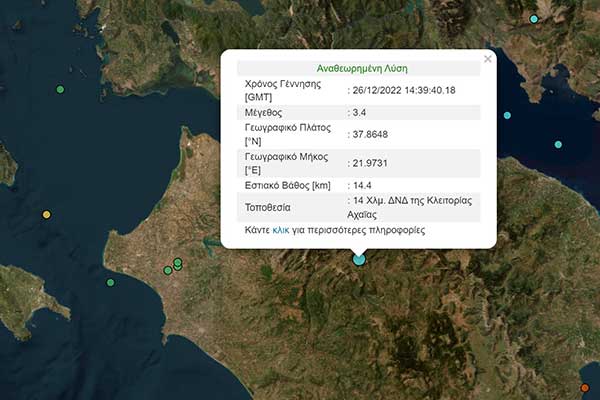 Σεισμός 3,4 Ρίχτερ στην Κλειτορία Αχαΐας - Αισθητός και στην Ηλεία