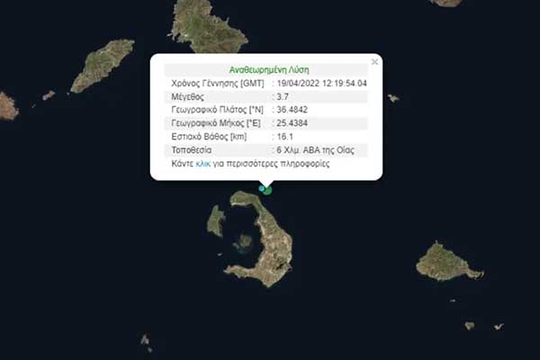 Σαντορίνη: Σεισμός 3,7 Ρίχτερ στα ανοιχτά του νησιού