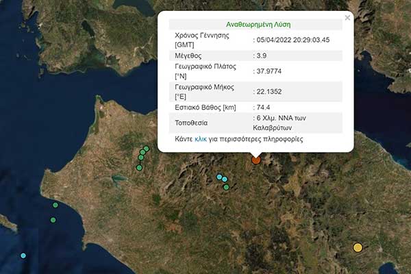 Σεισμός 3,9 Ρίχτερ στα Καλάβρυτα -Αισθητός σε Αχαΐα, Αρκαδία και Κορινθία