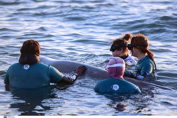 Άλιμος: Ελεύθερη στα βαθιά αφέθηκε η τραυματισμένη φάλαινα για να κολυμπήσει