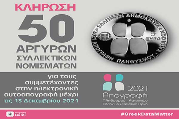 Απογραφή 2021: Κλήρωση 50 αργυρών συλλεκτικών νομισμάτων από την ΕΛΣΤΑΤ