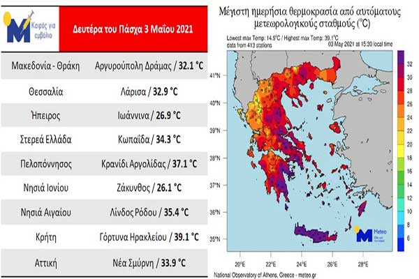 Μίνι καύσωνας στη χώρα: Εφτασε μέχρι και 39,1 βαθμούς Κελσίου -Πότε πέφτει η θερμοκρασία [πίνακας]