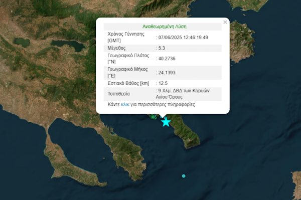 Σεισμός 5,3 Ρίχτερ στο Άγιο Όρος - Σε μικρή απόσταση από τις Καρυές το επίκεντρο
