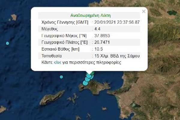 Σεισμός 4,4 Ρίχτερ στη Σάμο -Κοντά στο επίκεντρο που έδωσε τα 6,7