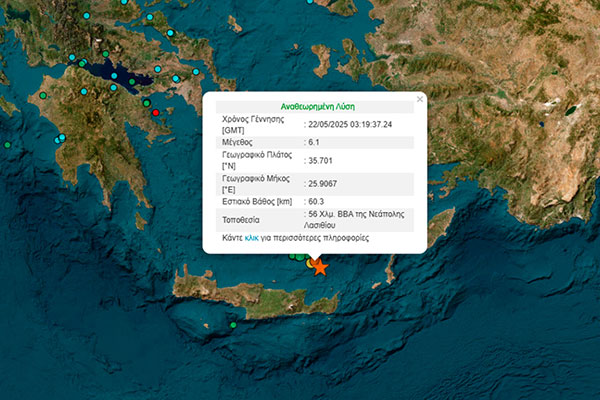 Σεισμός 6,1 Ρίχτερ ανοιχτά της Κρήτης - Έγινε αισθητός και στην Αττική