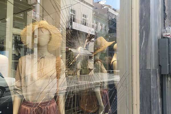Καταδρομική επίθεση στην Ερμού - Έσπασαν τζαμαρίες καταστημάτων και ΑΤΜ