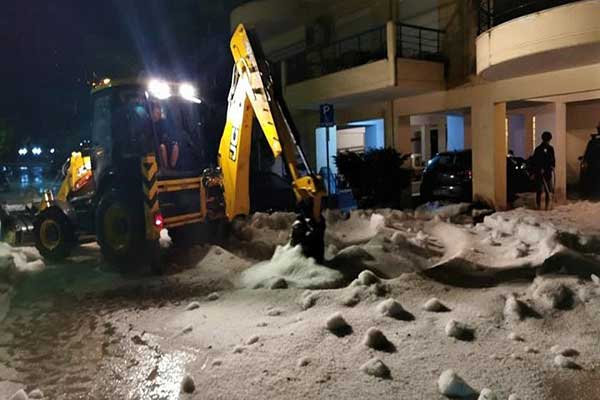 Δράμα: Πρωτοφανής χαλαζόπτωση έπληξε την πόλη - Έφτασε στα 30-40 εκατοστά