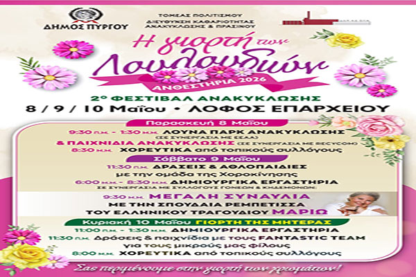 «Ανθεστήρια 2026» και 2ο Φεστιβάλ Ανακύκλωσης στον Δήμο Πύργου