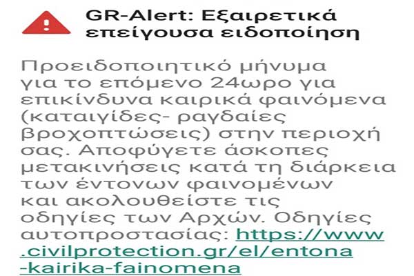 Ηλεία: Eιδοποίηση από το 112 για ακραία καιρικά φαινόμενα