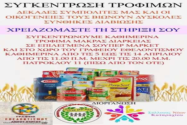 Δ.Πύργου: Συγκέντρωση τροφίμων για ευπαθείς οικογένειες