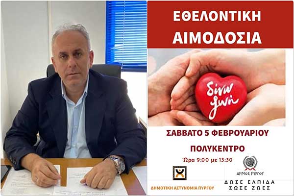 Δήμος Πύργου: Εθελοντική αιμοδοσία από την Δημοτική Αστυνομία