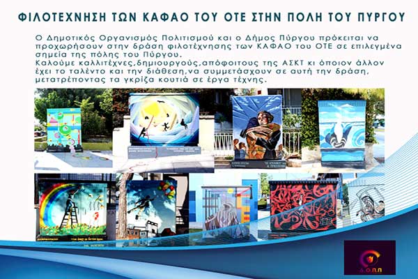 Δημοτικός Οργανισμός Πολιτισμού Πύργου: Δράση για την φιλοτέχνηση των ΚΑΦΑΟ του ΟΤΕ στην πόλη του Πύργου