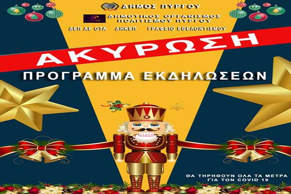 Δήμος Πύργου: Ακυρώνονται όλες οι εορταστικές εκδηλώσεις