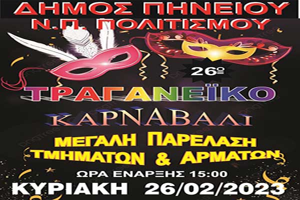 Δήμος Πηνειού: Καρναβαλική επανεκκίνηση σε Τραγανό-Βαρθολομιό - Αποκριάτικο ξεφάντωμα στις 26 και 27 Φεβρουαρίου