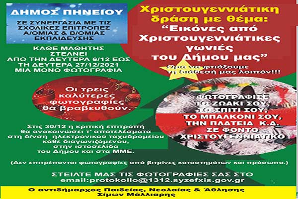 Δήμος Πηνειού: Χριστουγεννιάτικη δράση για τα παιδιά