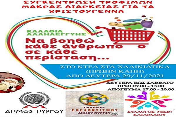 Δήμος Πύργου: Συγκέντρωση τροφίμων για τις ευάλωτες οικογένειες