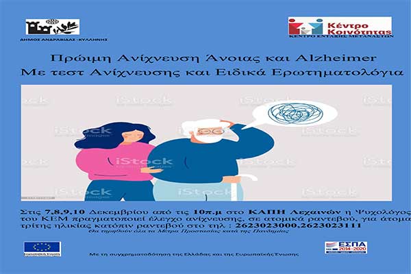 Δήμος Ανδραβίδας-Κυλλήνης: Συνεδρίες για ανίχνευση πρώιμης ανίχνευσης Άνοιας και Alzheimer σε μέλη του ΚΑ.ΠΗ