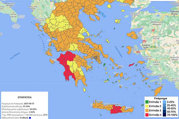 Κορωνοϊός: Στο «κόκκινο» η Ηλεία - Στο 6,51% ο δείκτης θετικότητας - Δείτε το χάρτη