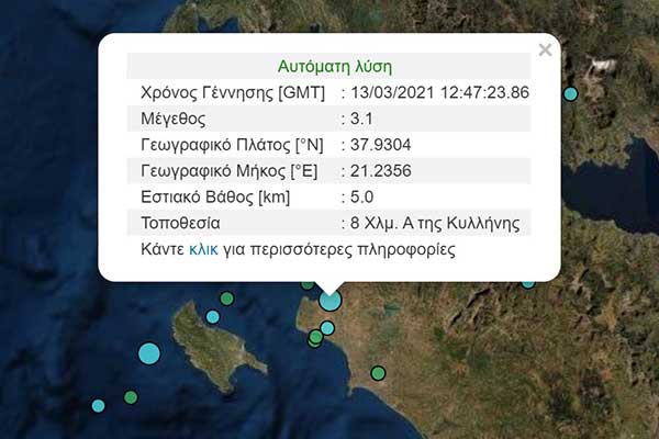Ηλεία: Ασθενής σεισμική δόνηση 3,1 Ρίχτερ - Ανατολικά της Κυλλήνης το επίκεντρο