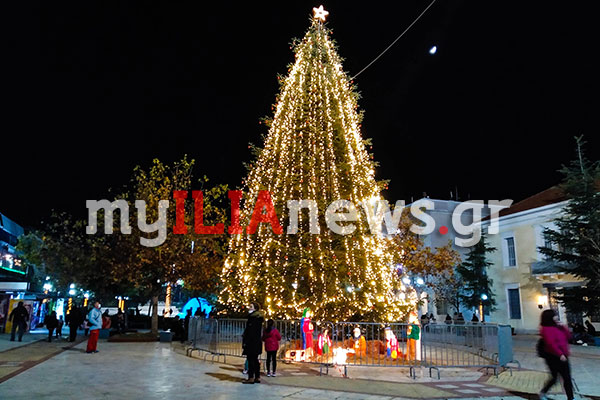Πύργος: Φωταγωγήθηκε το χριστουγεννιάτικο δέντρο στην Κεντρική Πλατεία [PHOTOS]