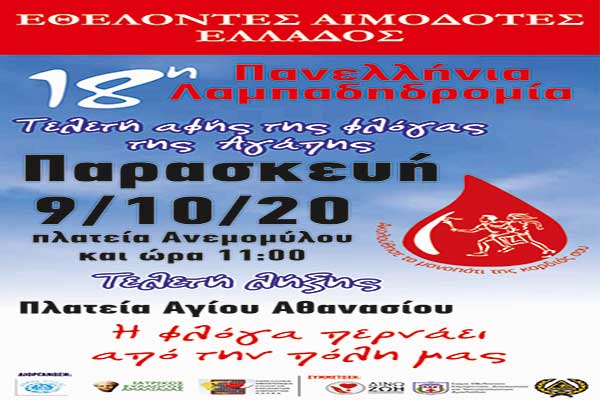 Ο Δήμος Ήλιδας υποδέχεται την 18η Πανελλήνια Λαμπαδηδρομία Συλλόγων και Φορέων Εθελοντών Αιμοδοτών της (Π.Ο.Σ.Ε.Α.)