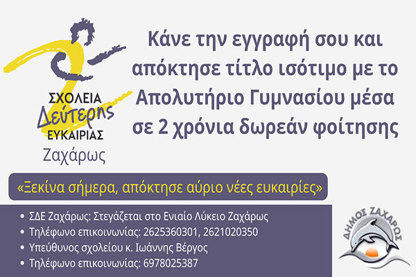 Ξεκίνησαν οι Εγγραφές στο Σχολείο Δεύτερης Ευκαιρίας Ζαχάρως