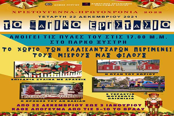 Δήμος Πύργου: Η μαγεία των Χριστουγέννων επιστρέφει από σήμερα στο Μαγικό Εργοστάσιο, στο Θεματικό Πάρκο Ξυστρή!