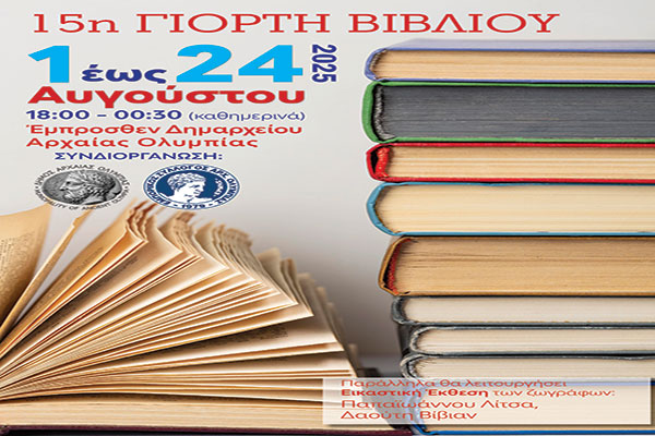 Αρχαία Ολυμπία: 15η Γιορτή Βιβλίου 1 έως 24 Αυγούστου