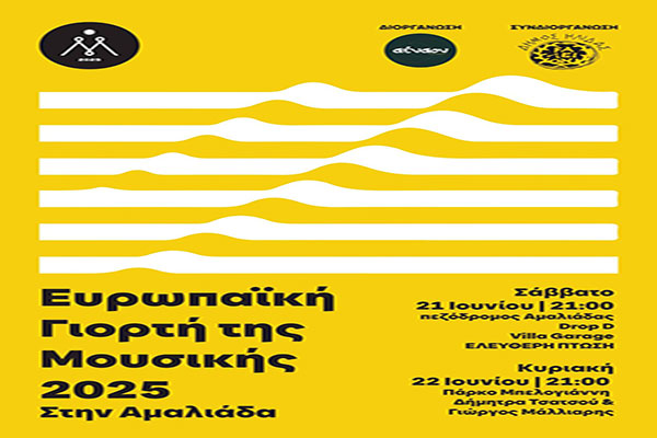 Το Σαββατοκύριακο 20 και 21 Ιουνίου 2025 η Αμαλιάδα και ο Δήμος Ήλιδας συμμετέχουν ενεργά στη μεγάλη Ευρωπαϊκή Γιορτή της Μουσικής