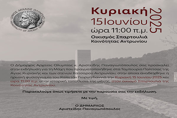 Δήμος Αρχαίας Ολυμπίας: Τιμά την ηρωική θυσία του Καπετάν Γιώργη Γιαννιά