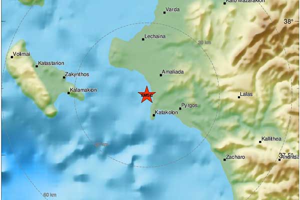 Ηλεία: Σεισμός 3,2 Ρίχτερ - Νοτιοδυτικά της Αμαλιάδας το επίκεντρο