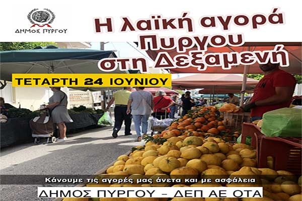 Δήμος Πύργου: Στη Δεξαμενή η λαϊκή αγορά της Τετάρτης