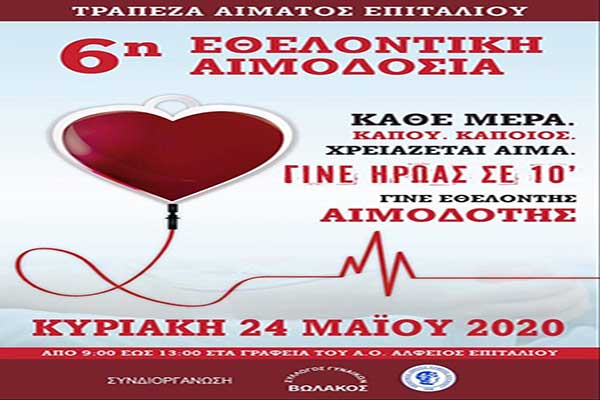 Εθελοντική αιμοδοσία στο Επιτάλιο την Κυριακή 24 Μαΐου